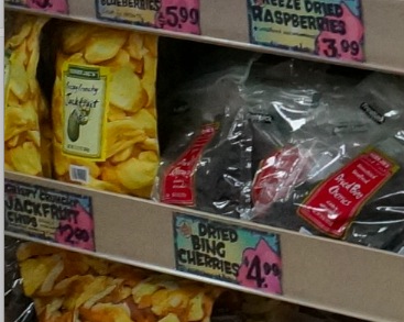 フリーズドライのフルーツ$2.99〜(バナナ、いちご、マンゴー、ブルベリー等)や、ドライフルーツ沢山。ココナッツチップス$1.99も。以前フリーズドライマンゴー$2.99を買ってみて、あまりのサクサク具合と見た目にチョークを連想いたしました(笑)珍しいもの好きにはいいね。